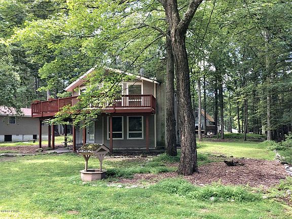 Fully renovated, gorgeous GLASS FRONT 2 STORY WITH SUPER DECK On a level landscaped parcel close to lake, beach, clubhouse, and tennis features wrap around deck, new vinyl siding, dramatic great room with vaulted ceilings and stone fireplace with woodstove insert, kitchen plus dining, family room with stone hearth, 3 bedrooms, 2 baths two-story house, and laundry in one of the best and developed gated communities in PA with lots of amenities. The house is located in Marcel Lake Community, on the private and very quiet and flat lot. It's a very bright house with a lot of storage space and very convenient access. Home features 3 Bedrooms, 2 Baths, kitchen, laundry place, huge SUPER deck, handicap accessible, and living room with wood-burning fireplace.