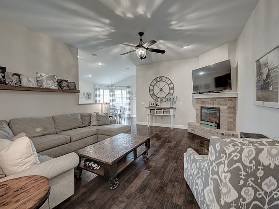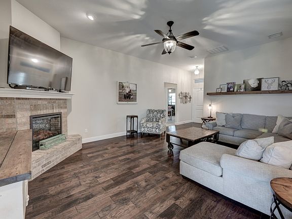 There are lots of perks in this home starting with the average utility bill which is currently $30 from the included solar panels! Located in Briarbrook golf community with neighborhood pool, trails and disc golf this home also has a reinforced pantry for storms, granite counters, wood floors and fenced yard. If that's not enough, the city park is a short stroll away for those with energy to burn or relax on the covered front porch. Full brick. $1,000 closing costs paid with acceptable offer for carpet update.