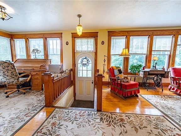Welcome to Zaffeys lane! Enter this 5.8 acre property down the long tree lined driveway to the beautiful 3 BD stone home! Enter the front door into the entry way/sitting area with HW floors. You will love the large room with a curved wall of windows overlooking the property. Updated white kitchen & large kitchen island with appliances included. Enjoy the screened in porch off the kitchen. Main level half bath. Upstairs are 3 bedrooms & a large full bath. Balcony's off 2 of the bedrooms to enjoy your morning coffee & watch the wildlife! This property features a carriage house with 3 BD, 1 & 1/2 BA and beautiful front porch. Large garage for 3 vehicles & carport. Beautiful property with many mature trees-Pines, oaks, apple, plum, cherry & more. Chicken coop, 2 fenced areas off the houses for your pets too! Great property for horses too! Free gas heat for the Stone House!