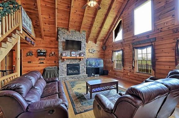 Everyday can feel like a vacation in this beautiful log home just minutes from Elizabethton. This home offers over 2500 sq ft, 3BR 3BA, tall vaulted ceilings, floor to ceiling fireplace, gorgeous mountain views and a great open concept. Split bedroom plan with a large master bedroom retreat, upstairs loft area will make a great playroom and the unfinished basement area offers plenty of room to store your boat, lawnmower or other toys. Enjoy the scenic views of East Tennessee from your large wrap around deck. Fresh landscaping and the deck has recently been refinished and restained. With over 1.5 acres of land this is truly a rare find. All information herein deemed reliable but subject to buyers verification.