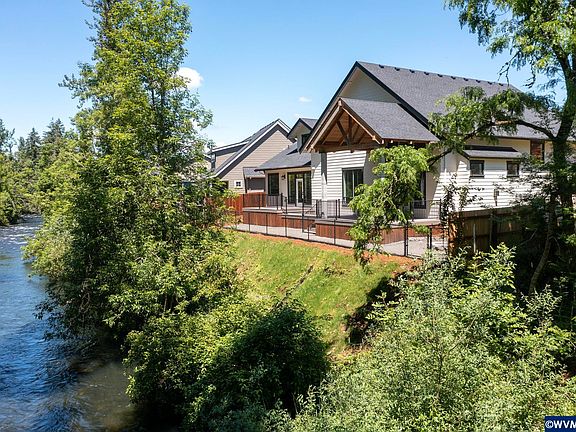 Back on Market - No Fault of Home. Waterfront! Kitchen features oak cabinetry, quartz counters, GE Café Smart Appliances & undercabinet lighting. Living room has 2 story vaulted ceilings, stone fireplace, built-ins and views of nature out every window. Primary bedroom on main w/ dual closets, private deck, luxury bathroom w/ soaking tub and tile shower. Laundry and office on main. Upstairs are 2 additional bedrooms, 1.5 baths and bonus room w/ wet bar. Wired for EV.