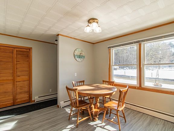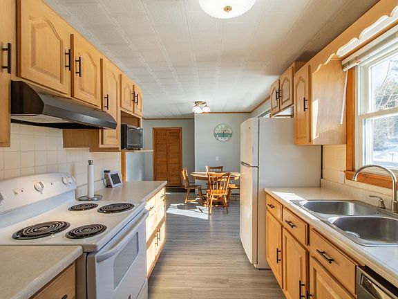 Great location & superb setting for this one-level, 3-bedroom home. If you want to be near everything the Newport/Derby area has to offer but prefer a country setting, this ranch could be the perfect fit. The level 1.33-acre lot is mostly open with some mature pines and other softwood trees as well as 2 maples on either side of the paved teardrop driveway. Flowering shrubs provide additional interest & color in the summer months. From the 12x20’ deck you’ll enjoy glimpses of Lake Memphremagog & the local mountains. This property may also have a right of way to the lake. Inside there’s a galley-style kitchen that’s open to the dining area. With a pantry closet & an additional closet off the front entry there’s no shortage of storage. The living room is large & bright with a glass door to the deck. Down the hall is the full bath, with an extra-long vanity & newer vinyl flooring & walk-in shower. Two bedrooms are on the back side of the house, with the main bedroom overlooking the front yard. The full basement offers potential to create more living space as well as providing lots of storage. An attached 1-car garage & oversized detached 2-stall garage will keep your vehicles, tools, & toys out of the elements. Vinyl siding & standing seam metal roof make the exterior low maintenance. This home is less than a mile from North Country Hospital, Newport Recreation Path & Bluffside Farm (120 Acres of conserved land) parking, but access is just across the road! Set up as an Airbnb.