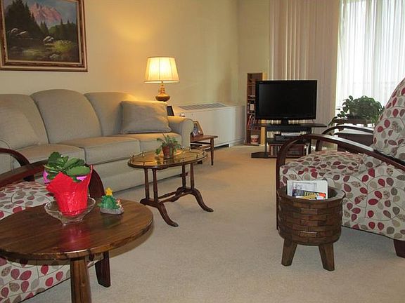 Beautiful large tri level unit. for those who do not want bedrooms and living space on one floor. Has large balcony overlooks the swimming pool/putting green, and walking/running path. maple cabinets in kitchen. excellently maintained, clean and fresh. master bedroom has walk in closet and full bath. second bedroom has large closet. lots of storage throughout unit. additional storage locker is adjacent to unit. beautiful lobby area and sitting areas by elevators. very gracious, well located building. fee includes real estate taxes, electric, gas, water, sewage. maintenance of interior and exterior, common area insurance. Enjoy three levels of living, plenty of spaces for sitting outside, pool, all without having to mow the lawn or shovel snow. SECURE building with gatehouse. plenty of free parking for visitors and owners.