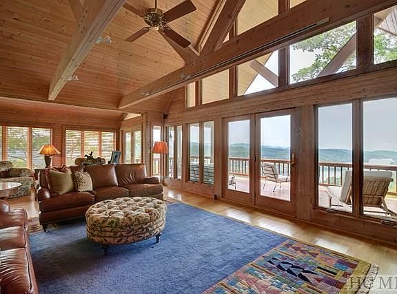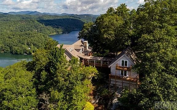 Panoramic views everywhere you look! This lovely gated home sits on a mountain top with over 7 acres featuring stunning views of Lake Glenville and the surrounding mountains. This home is filled with natural light from the many windows and glass doors to the deck. With 4 bedrooms and the bonus room above the garage, there is plenty of room for family and friends to enjoy this beautiful and peaceful mountain retreat. The chef's kitchen has been updated with a Wolf gas/oven range, sub Zero refrigerator and Asko diswasher. Stepping inside this spacious home, you can't help but see the majestic mountains and lake from the front door. Open living area with high ceilings and a beautiful stone fireplace open up to the deck. Master bedroom and bath on the main level with private deck, guest bedroom, bath and loft upstairs with mountain views out all the windows. Lower level has two more guest bedrooms, TV den, guest bath and laundry with wet bar. Two car garage with covered walkway to the front door. An unfinished room and bath above the garage for any purpose! It would make a wonderful art studio and office or extra sleeping. Don't miss the opportunity to see and feel the beauty of this home and property! Reduced by $50,000 on July 9th, 2018 and ready to sell!