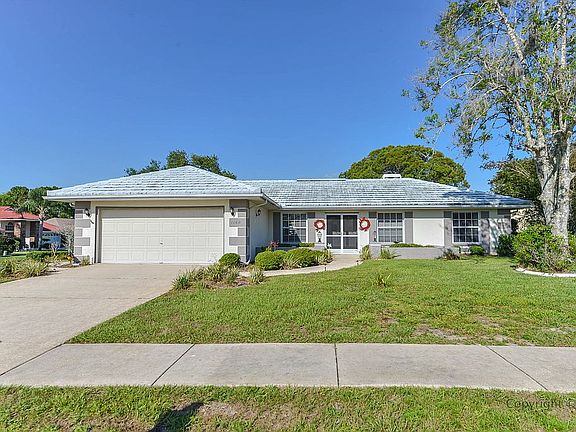 Active with Contract. Located in the lovely Links at Seven Hills neighborhood. Nestled on a corner lot for a little extra space and in a cul de sac for privacy. Sidewalks line the streets to make an afternoon walk enjoyable. Mature landscaping in the front greets you up to the courtyard entrance. The cement tile roof makes a statement. Inside you will find tall soaring ceilings, and an open living and dining room area. The wood burning fireplace is a nice accent to cozy up this space. The kitchen holds nice cabinet space and overlooks the large breakfast nook area with lovely bay windows letting in beautiful natural light. The guest bedrooms have great closet space and ceiling fans above. The guest bath has access to the lanai right outside the hall which helps when entertaining. The master bedroom is very large in size with a huge walk-in closet. The master bathroom holds dual sinks along with a walk-in shower. The relaxing lanai holds great space. Part is shaded from the sun for dining alfresco or relax in a lounge chair and catch some rays. The back yard is partially fenced in make it a great area for the pet to roam freely. Make your appointment today and make this your home tomorrow!
