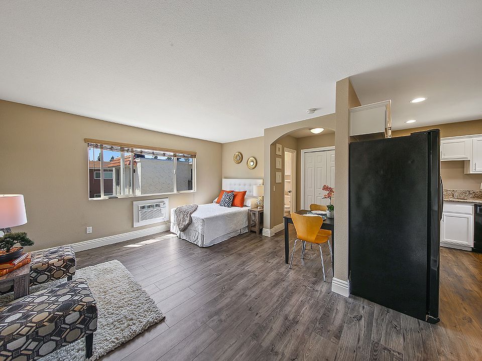 Quaint and Adorable studio, MOVE IN READY in a gated community. Totally remodeled new floors, granite counter tops, fresh paint throughout, new wall unit, and new bathroom vanity.Located on the second floor with no neighbors above. Absolutely perfect first home - stop wasting rent money and start owning. Come see today!