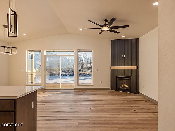 Modern inspired design by WM Construction! This ranch style home is situated in 1,446sf with 3 beds, 2 baths, laundry room, pantry and a 2 car garage! The view from this home is absolutely breathtaking with southern exposure and Chugach mountain views. 9' ceilings and quartz counters throughout, custom cabinetry w/ 42'' kitchen uppers, covered decks and a well laid out luxurious owners suite!This is one of the very last opportunities to buy in the convieniently located Green Acres subdivision in Palmer City limits. Enjoy breathtaking mountain views, paved streets, fiber high speed internet, city water and city sewer. Full list of features: Covered front porch, Massive covered back deck Asphalt Walkway Luxury Vinyl Plank Flooring Vaulted Great Room Ceiling fans Gas Fireplace with a Stained Floating Mantle Quartz Countertops Custom cabinetry with soft close doors! Pantry 9' ceilings throughout Bedroom off entry would also make a great office Laundry room w/ linen closet Gas dryer hookup Carpeted bedrooms Tray ceiling in Owner's Suite with mood lighting Dual sinks w/ tiled shower Custom walk in closet with built ins Cat 6 wiring in every room Dedicated freezer outlet Garage Floor Drain Garage Unit Heater Garage Door Opener On demand hot water heater 5 star energy rating