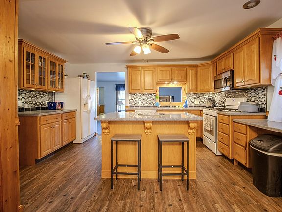 • Ceiling Fan(s), Countertops-Solid Surf, Kitchen Island, Natural Woodwork