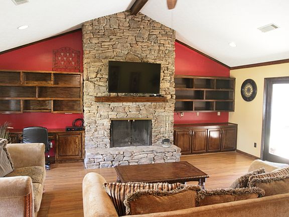 Rustic elegance in this updated 3 bedroom 2 bath home. Granite and stainless appliances in kitchen with double oven! Gorgeous real stone fireplace in living room with vaulted ceilings and beams. Huge master bedroom with walk in closet & updated vanities/cabinets in both baths. This home is all on one level and has no carpet! Backyard is lovely with pergola and firepit, raised beds ready for garden