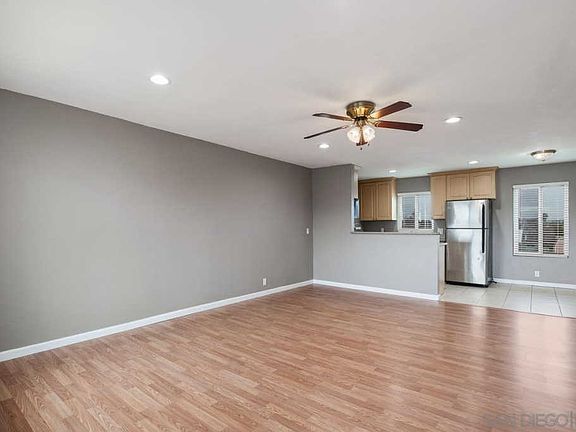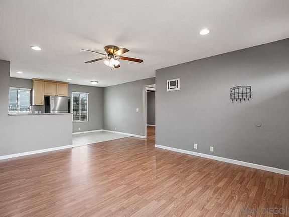 Beautifully refinished TOP FLOOR Washington Heights condo in the heart of El Cajon. This 2 bedroom condo has been refreshed with New paint, upgraded appliances, newer flooring and more! This unit features an open floor plan with canned lighting and ceiling fans in every room and in unit laundry. Enjoy your own private refinished balcony and dual pane windows throughout. Unit comes with 2 parking assigned parking spaces. Complex is private with a gated entrance and greenbelt with a recreation area.