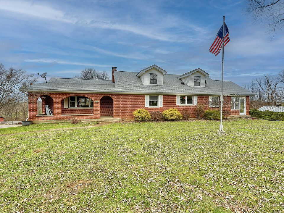 Mini Gentleman's Farm with endless possibilities on 5.77 Acres. Experience the perfect blend of country charm and everyday convenience with this exceptional all-brick Cape Cod, ideally located with easy access to I-75S and I-71S. Set on 5.77 picturesque acres, this one-of-a-kind property is ideal for horses, hobby farming, or a home-based business. The home offers 5 bedrooms and 4 full bathrooms, highlighted by a spacious, entertainer-friendly kitchen featuring granite countertops and custom upper cabinetry. Rich hardwood floors flow throughout, complemented by a custom staircase, columns, and headers, creating a warm, timeless feel. Cozy up by two wood-burning fireplaces—a stone fireplace in the Living Room and a brick fireplace in the Family Room. The Living Room also boasts a raised ceiling, adding to the home's open and airy appeal. The main-level primary suite includes a luxurious en-suite bath and walkout access to a peaceful sunroom. An additional main-floor bedroom and full bathroom provide flexibility for guests or home office needs. Custom solid alder wood doors with matching stain, a built-in pantry, and custom first- and second-floor bathrooms with Blue Pear granite flooring showcase the attention to detail throughout. The finished lower level expands the living space with a bedroom, full bathroom, kitchenette, and direct pool access through a fun bar area—perfect for entertaining. Outdoors, enjoy summer days by the in-ground pool, relax on the covered front porch, or unwind on the expansive 62' x 8' covered back porch overlooking rolling pastures and scenic grounds. Equestrians and hobbyists will love the impressive 7,000 sq ft detached barn/garage featuring 7 horse stalls, fenced pastures, a large lean-to, and even a car pit for the mechanic at heart. With quick possession available, abundant living and storage space, and thoughtful upgrades throughout, this mini farm is truly move-in ready and waiting for you to make it your own.