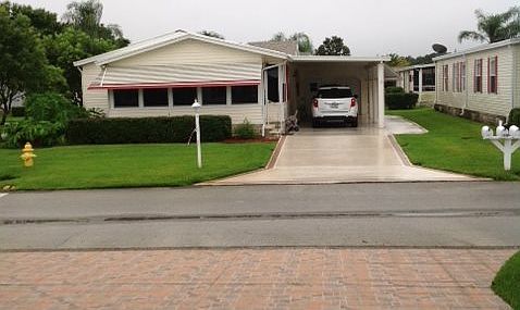 Honey Stop the Car !!! This Corner lot features a Well Maintained 2001 Skyo Double Wide with a Split floor plan of 3 bedrooms, 2 baths, Plenty of closets, a Large Eat in Kitchen with center island & beautiful cabinetry and Stainless Steel appliances, indoor laundry room, Bonus room, central air, crown molding, large carport with golf cart path leading to shed with elec. & water, new roof in 2016. and more. The pride in ownership shines throughout .