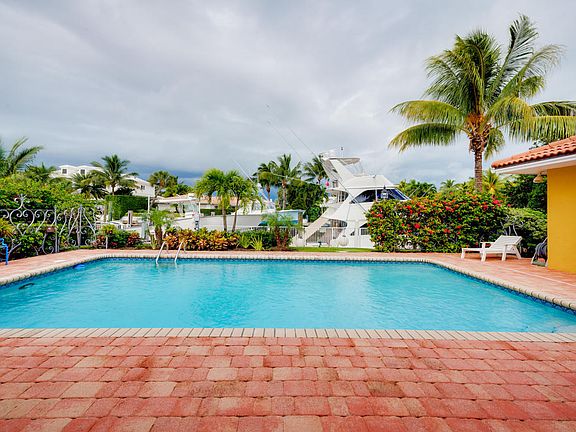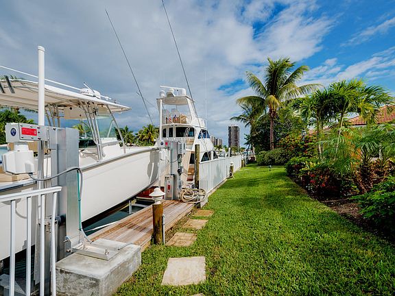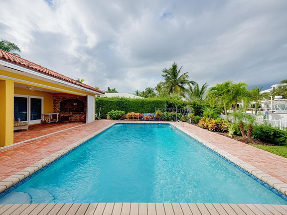 Boaters Dream, just minutes to the oceans inlet, with a 100'of deep water frontage, 60' dock, and just added a new 14,000 lb boat lift with power.This meticulously cared for homes exterior & part of the interior was painted in 2015. Added the bar and finished the room with cedar walls, & ceiling. This home also features ANDERSON Double pane insulated windows, natural gas which will run the whole house generator, the two instant hot water heaters and the gas stove. Also owner just installed new pool pump, central vacuum, crown moldings and added some solid core doors. Roof was also just cleaned, inspected and treated to look like a new tile roof. Great floor plan and patio features open pool area with built in grill & summer kitchen area, surrounded by tranquil garden with lush landscapin