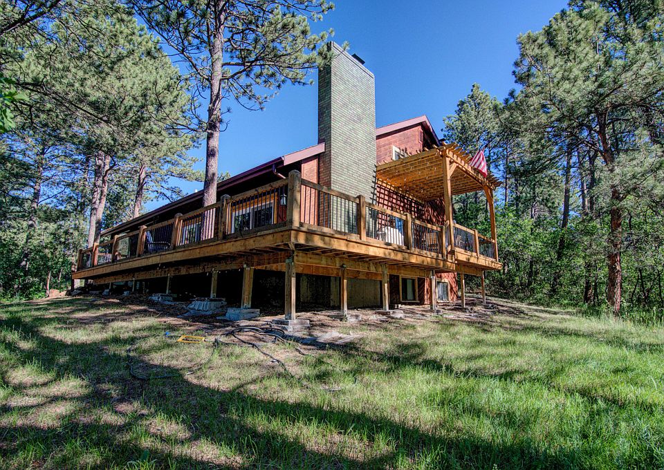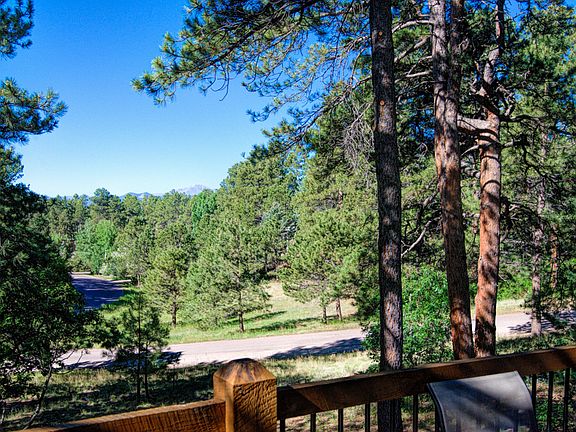 Beautiful home in North Woodmoor on 1.01 acres. Home has a large surrounding deck with pergola and gorgeous views of Pikes Peak and nestled in a heavily treed lot. It features three bedrooms and 3 ¾ baths, two of which have jetted bathtubs. There is another room in the basement that can be used as a bedroom to make it a four-bedroom home. Much of the house has been painted over the last year to include the main living area. The main floor and the second floor have brand new carpet and the hardwoods were refinished in the May 2018. Home also features a gas fireplace and a wood burning stove for those cozy winter evenings while watching the snow fall. Basement also features a wet bar as well as a amazing built-in for hanging your large flat screen TV. Two car over-sized garage with attached work shed complete this property. There is plenty of room to grow and many beautiful evenings to enjoy the views and the wildlife. Come take a look today! No buyer agent fees will be paid.