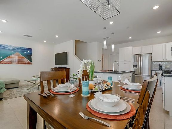 Immaculate, Spanish style 3 bedroom, 2.5 bathroom single family residence situated directly across from a beautiful park and playground. Built in 2020, the home still appears brand new. Bright and airy open concept bottom floor with huge quartz kitchen island that seats four. Large windows throughout let in substantial natural light. Downstairs guest powder room. Easy to clean tile flooring throughout the bottom floor. Carpeted upstairs. Very spacious primary bedroom with huge walk in closet and ensuite bathroom with large glass shower. Loft at the top of the stairs provides extra space for an office or TV retreat. Two more bedrooms (one with a walk-in closet) are located upstairs and are separated from the primary bedroom by the loft, providing added privacy. These bedrooms have their own bathroom with bath/shower combo. Generous laundry room with shelves. Oversized 2 car garage. Succulent plantings in front yard for extra low maintenance. Comes with all appliances and can be offered fully furnished, partially furnished, or unfurnished. Please note that the pictured furniture is the prior owner's furnishings. The home is occupied by the current tenant, so I'm unable to take pictures of the existing furnishings that I purchased for the home, but they are very high quality with minimal use. Comes with all appliances. Small pets welcome with additional monthly deposit. Available December 1, 2024. Can show the property with 24 hours' notice. Tenant pays utilities. Owner pays for yard maintenance. 12 month lease required. No smoking is allowed. No HOA.