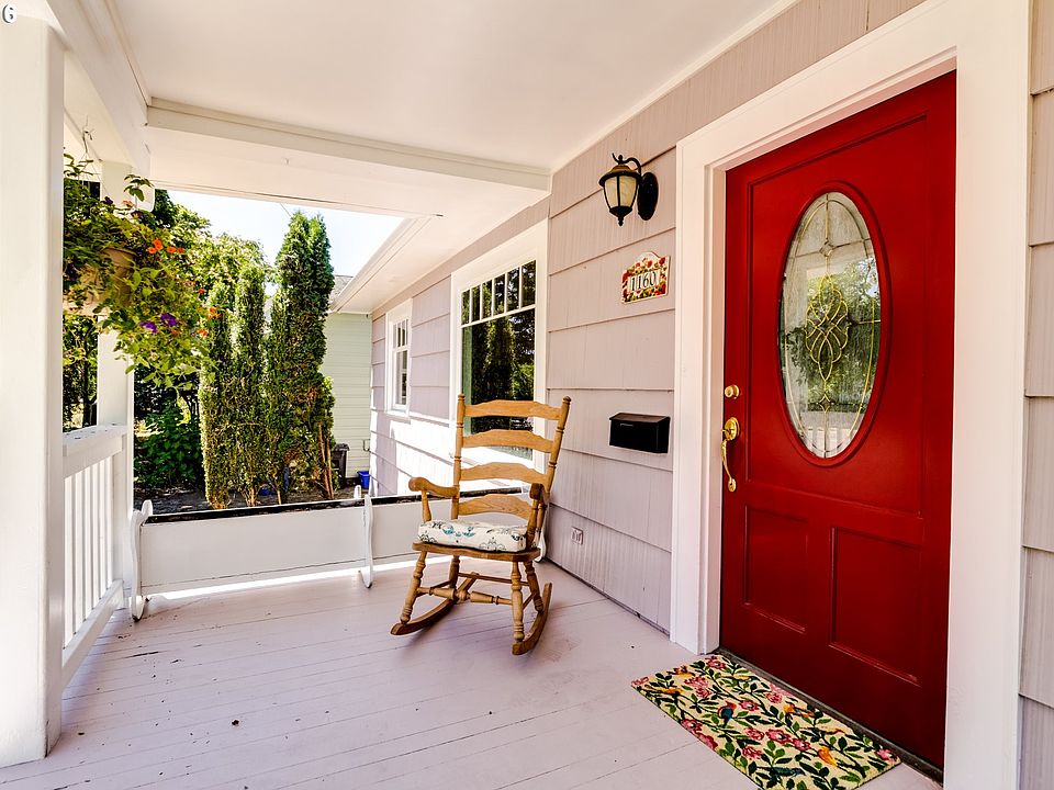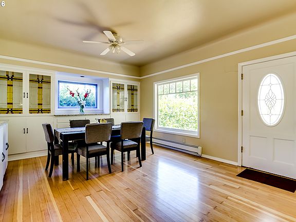 Refinished wood floors, granite kitchen countertops, stainless appliances, new laminate in Sun Room. Charming home features coved ceilings, wood casement windows, skylights, built-ins w/stained glass doors.View private backyard w/pond from inside Sunroom, or outside on stone patio.