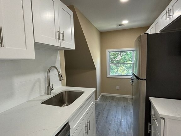 This beautiful and fully renovated apartment features two generously sized bedrooms with ample closet space. The combined living and dining area offer an inviting space perfect for both entertaining and daily relaxation. The sleek, fully equipped kitchen is outfitted with brand-new stainless steel appliances, granite countertops, and custom cabinetry. Elegant vinyl flooring extends throughout the entire apartment, while large windows flood the space with natural light, creating a warm and welcoming atmosphere. For year-round comfort, the apartment is equipped with an efficient central heating and cooling system. On-site parking is also available.