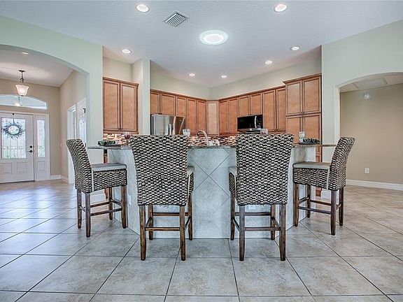 Welcome to Your Dream Retreat with this Aspen designer model nestled in the Village of Fernandina. A painted driveway and sidewalk take you to the entrance where the moment you step inside, you’ll be welcomed by an open concept living space with ceramic floors on the diagonal that flow seamlessly through the living room, kitchen, baths, and laundry room. The abundant natural light highlights the fresh new carpet in the bedrooms, creating a warm and inviting atmosphere for relaxation and rest. Your dream kitchen offers upgraded glazed Madison Maple cabinetry with 42” uppers, pantry and slide outs for ease of access. An large kitchen island is the perfect place for a cup of coffee and light conversations with family and friends. Your primary ensuite offers double sinks, walk in closet, linen closet, ceramic tile Roman shower, and private water closet. Three sets of sliding glass doors provide a calming view and access to the heated pool and spa, all set within an expansive bird cage that allows you to relish the beautiful Florida weather year round. For your overnight guests there are two bedrooms, one with a pocket door that make for a private retreat and access to the guest bathroom. Bedroom number 3 could also be that cherished home office. With a two-car garage plus golf cart garage. The epoxy-sealed garage floor not only looks sleek but is also built to withstand the elements, ensuring your vehicles are always in top condition. Nearby Bonifay Country Club is a favorite for golfers, and for those looking for a culinary delight. Neighborhood and Villages recreation centers are close by, as is the Sarasota golf practice facility. More room in your day? There's a regional recreation center, shopping plaza, and Brownwood Paddock Square just a golf car ride away. Don’t miss the chance to make this exquisite Aspen model your own. HVAC: 2022. Schedule a private tour today and discover the unparalleled lifestyle waiting for you in the Village of Fernandina! Let Me Guide You Home.