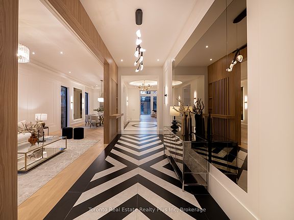Welcome to 1160 Mona Rd, a masterpiece years in the making, crafted with dedication, vision, and meticulous attention to detail. Set backing onto Kenollie Creek in the heart of sought after Mineola West, and a commuter's dream with a 3 minute walk to the GO Train platform, this custom estate blends modern transitional architecture with warm natural materials to create a sanctuary of comfort, elegance, and timeless design. Offering 9200 sq. ft. of living space, the home features grand ceiling heights, natural stone elements, and thoughtfully curated finishes that establish an atmosphere of quiet luxury. The chef inspired kitchen centres around an impressive extra wide island and includes a fully functional separate chef's kitchen, ideal for entertaining at any scale. Elegant living areas transition seamlessly to the outdoors. The resort style primary retreat offers boutique dressing rooms, a spa ensuite, and a large private balcony overlooking the estate. The lower level includes a gym, rec room, movie theatre, full spa, private office, an in law suite, and a nanny suite with its own separate entrance, along with walkout access to the landscaped grounds. Outdoors, the property becomes a private resort with a shimmering saltwater pool and Jacuzzi, an outdoor cooking station with fireplace, a heated and cooled cabana with optional kitchen and bathroom, and a professional multi sport court with lighting for basketball, pickleball, volleyball, and badminton, all embraced by serene conservation views. The garage is prepared for a future car elevator, allowing flexible expansion of vehicle storage. With driveway parking for 6 to 8 cars and thoughtful smart home integration, the estate balances luxury, practicality, and forward thinking design.