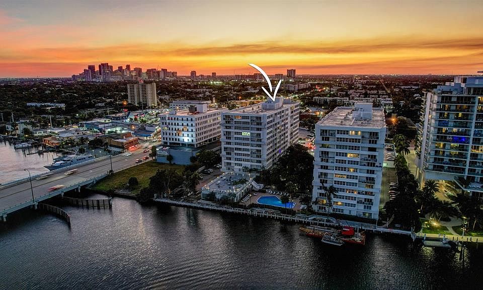 Amenities include a saltwater pool overlooking Middle River, an updated gym and clubroom, a nearly finished seawall, and plans for a kayak area and dog path. Enjoy covered parking, grilling by the water, and access to nearby parks, beaches, a boat ramp, Galleria Mall, fine dining, and Whole Foods.