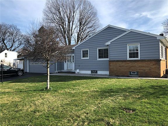Look no further! One floor living. This house has it all. Brick and vinyl sided ranch. Fabulous new eat in white kitchen with luxury vinyl tile, stainless steel appliances, gas stove, granite countertops. Living room has large bay window, hardwood floors, wood burning fireplace. New bathroom with lux vinyl floor. Nice size main bedroom with double closets. Additional square footage in newly finished basement complete with bar and keg dispenser, 2nd kitchen. Furnace 5 years, central air. Covered porch to left of 2 car garage. with attached additional shed for storage. Handy ceramic breeze way. Fenced yard. Driveway on Traymore. Painted in today's decorator colors. Move in condition. Wont disappoint.