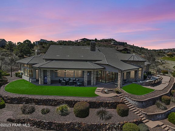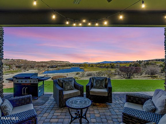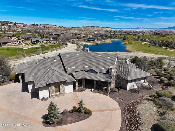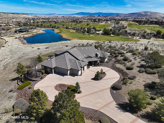 PRESENTING THE LARGEST LUXURY LOT IN PRESCOTT LAKES! Offering OVER 4 acres and situated overlooking the 2nd & 3rd hole on one of Prescott's premier golf courses in the highly sought after community of Prescott Lakes this spectacular luxury home is sure to take your breath away! The stunning lake, golf course and majestic mountain views, will leave you in awe! You are invited into this home with the most beautiful foyer, the gourmet kitchen has an amazing island, complete with extra storage, a beverage refrigerator, and is 88 SQUARE FT!! The kitchen also offers 2 dishwashers, a wall oven, warming drawers, central vacuum, and an eat in dining area. The living room views are 2nd to none and the retractable glass walls open to bring the outside in and makes for the perfect space to entertain.