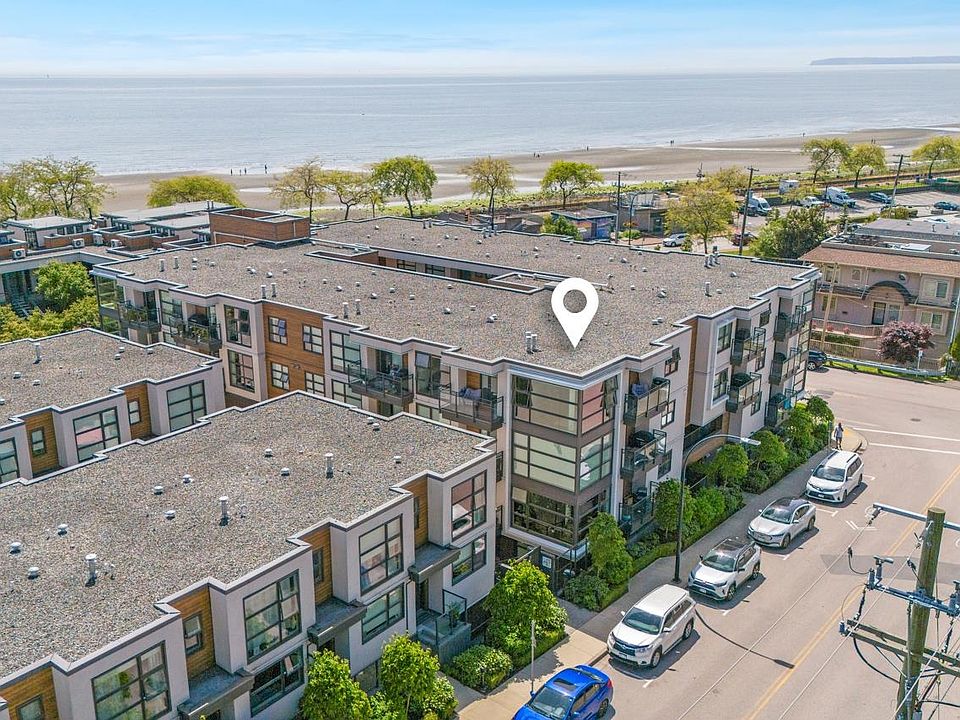Stunning Top-Floor Corner Penthouse in Newport at West Beach! This exquisite 2 bed, 2 bath home boasts 2 spacious balconies, one with a gas bbq outlet & one with a peekaboo ocean view. The modern, open-concept kitchen features a gas range, large island & quartz countertops with a waterfall edge. The living room is complete with engineered hardwood floors, floor-to-ceiling windows and a gas fireplace. Home is on the quiet corner of the building & access to the courtyard. The location is unbeatable - stroll across the street to the beach, explore the scenic promenade, or visit Canada's Longest Pier. Marine Drive's vibrant dining scene is just steps away, ensuring you're always close to the best that White Rock has to offer. This isn't just a home; it's a gateway to an incredible lifestyle.