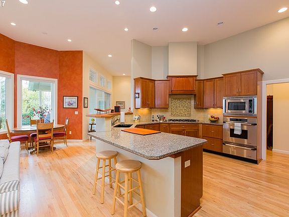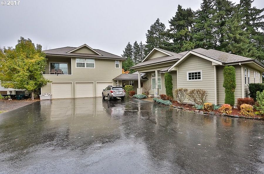 One level Custom home w/Mt. Hood view. 3 car garage w/1BR, 1BA, 1200 sqft guest suite, covered deck above. Main:master ensuite, 1 BR, den - potential 3rd BR, dining, living/family areas, laundry, gourmet kitchen w/quartz countertops & gas SS appliances. Solid oak floors, cherry cabinets, 10/12 ft ceilings throughout. Covered composite deck, 1 acre fully landscaped yard w/sprinkler system. Mechanical room/storage in basement.
