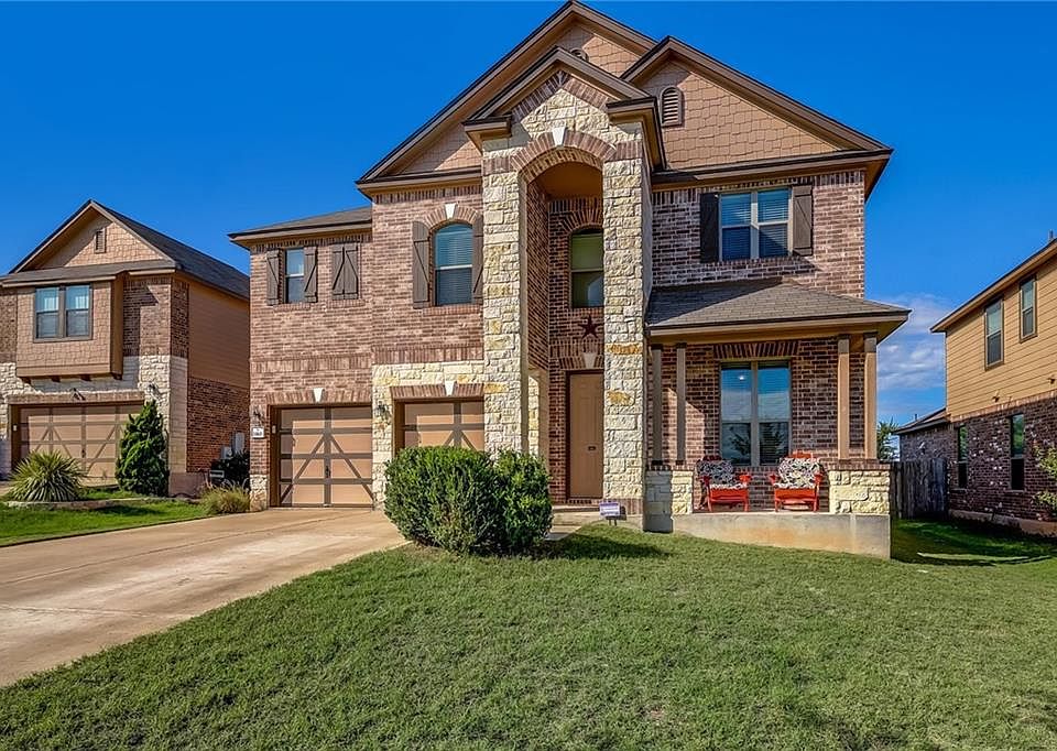 Tucked away in a quiet Round Rock neighborhood you'll find a beautiful 4 bedroom home that backs to a greenbelt. With soaring ceilings, tons of windows, and wide open space throughout, you'll want to make this home your own. Gourmet kitchen is a chef's dream with a double oven - plus a breakfast nook and a dining room. The dedicated study with built-in shelving on the main level is perfect for an office with the comfort of home just steps away. Upstairs leads to the extraordinary master bedroom that includes a private nook. Fall in love with the jetted garden tub in the master bathroom plus a separate stand-up shower and double vanity. Each secondary bedroom is spacious and all include walk-in closets. Entertain in the private fenced-in backyard that includes a covered patio. This property has a pre-wired security system directly hooked up to the smoke detector for added security. Be in a great school district near Dell Diamond with low property taxes - come see this one today!