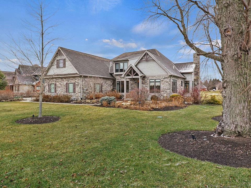 Beautifully Built Sand Creek Home on the Golf Course ! 5 bedrooms, 5 bathrooms, As you walk in the front door you will notice the attention to detail from the arches, lighting and trims. Main floor: Office, Formal dining,Great room with high coffered ceiling ,fireplace and built-in cabinetry. Kitchen with large island, 2 dishwashers, Wolf Stove, SubZero Refrigerator/Freezer wall. A send island with wine storage. Pantry and desk. The morning room has a tray ceiling and numerous built-ins. Step out onto the charming screen porch with wood burning fireplace.The main floor bedroom suite has a view of the course, Large shower, WIC, soaking tub and double sinks.Upstairs are 3 bedrooms, one with a ensuite bath and the other a shared bath , all have walk-in closets. Basement :Walk out with lots of light, game area, rec room with fireplace, bar, 5th bedroom, bath with steam shower, craft room with built-ins and sink. Generator, Heated 3.5 garage, central vac and 7500 Tulips in the Spring!