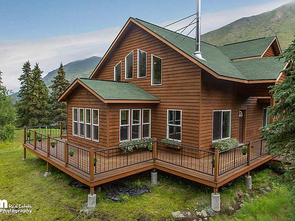 Private location surrounded by mountains & captivating views a nature lover's dream! Home sits on 2 acres at the base of 2,000-ft peak, w/private trail access for hiking, skiing & fishing, or view wildlife from huge wrap-around deck. Home has open floor plan with modern great room & fireplace, sunroom, kitchen, bedroom, bath & laundry on main level. **click link for more info.