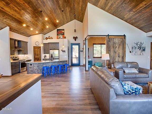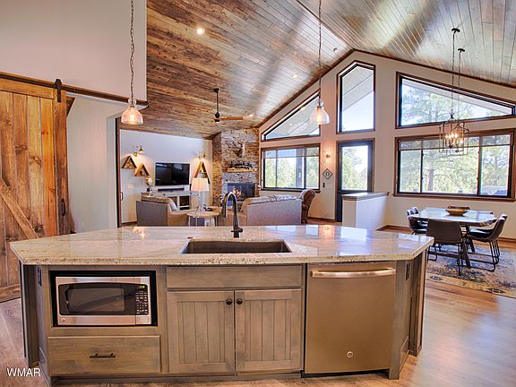 FABULOUS Fully furnished - open concept floorplan home that's beautifully designed with gorgeous rustic plank flooring and T&G ceilings in Great Room and Den. The home features a stack stone gas Fireplace, perfect for cozy nights! You will love the Granite counter tops thru-out,, barn doors to separate Den/Office or potential 4th bedroom, and the solid wood doors & trim thru-out. Could make a great investment property or your perfect Mountain Retreat! The home sits on a corner lot with a paver drive way, sidewalk & back patio with an expansive front covered Trex deck to sit, relax & take in the fresh mountain air! Amazing VIEWS. Split floor plan with 3 beds and 2 baths PLUS a DEN. Incredible pride of ownership! FULLY FURNISHED! TURN KEY! ALL YOU NEED IS YOUR TOOTHBURSH NOTE - NOTHING IN THE GARAGE OR UNDER THE HOME CONVEYS. Located in Torreon which is a gated community and a well known Troon Development. Offering 2 Championship 18 hole golf courses, Fitness Center, Salt Water Pool, Family Center, 2 restaurants, Pro Shop & Equestrian Center. Imagine living in the White Mountains of Arizona where you have 4 beautiful seasons and where you can breathe in the fresh mountain air and enjoy the 40 lakes and over 600 miles of rivers and streams. In addition to the amazing fishing, this area has one of the most extensive trail systems in the south west for hiking, biking, horseback riding, quading and more. Sunrise Ski Resort is also just 40 minutes away with 3 beautiful mountains to ski, snow board or sled. If shopping is your interest, you will love the antique stores and the multitude of arts and craft shows that happen in the summer. The music festivals have something to fit everyone's enjoyment. Do you love to golf? There are 7 amazing golf courses, 3 that are public. The White Mountains, where this home/cabin is the best kept secret of Arizona! Come and explore and enhance your living! Pinetop-Lakeside was also voted 'Best Cabin Region in the U.S"... Embrace the MAGIC!