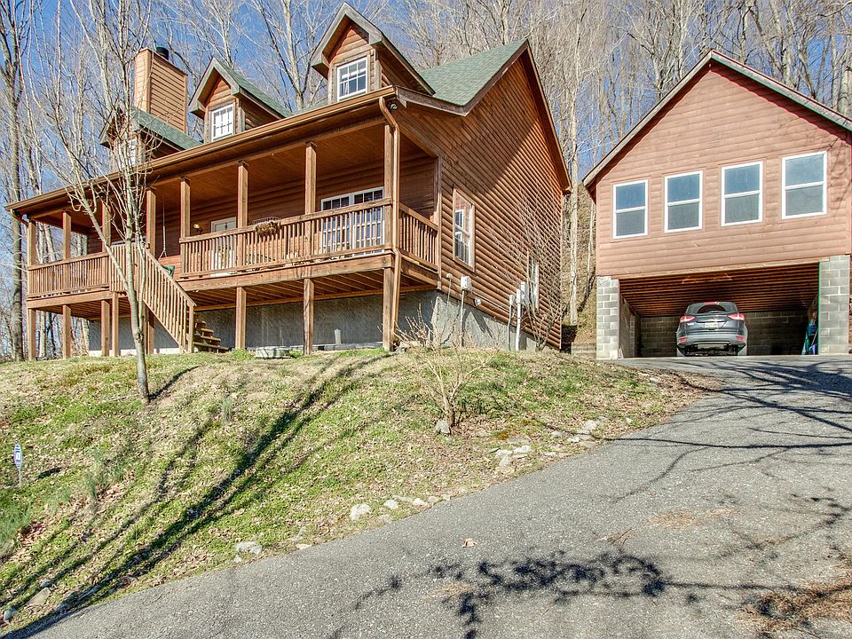 Everything you want in a Center Hill Lake view home. Beautifully built with covered front porch, abundant windows, open floor plan, vaulted ceilings, designer kitchen with stainless/granite, 4 bedrooms (huge master suite), 2 full baths & outdoor fire pit. Paved drive & detached garage with large unfinished bonus area. Development boat storage area. A must-see CHL home.