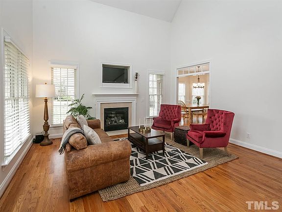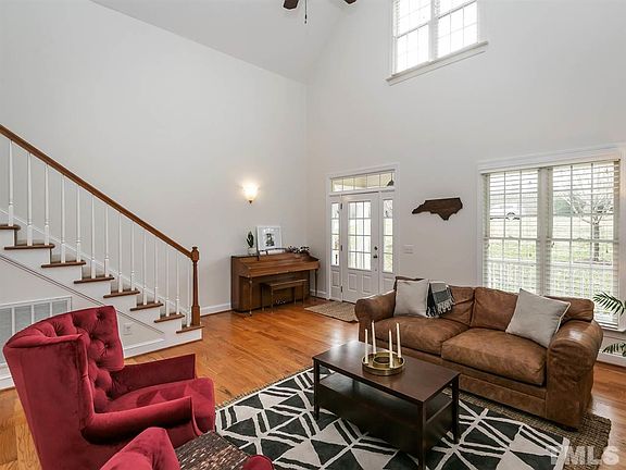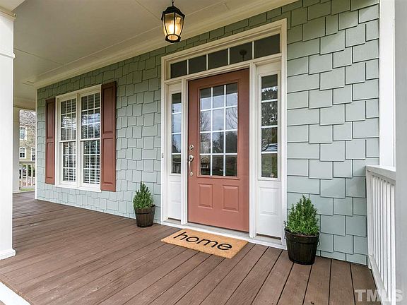 This quaint cottage brings tranquility uncommon in the Triangle. Just steps from the community pool, this spacious home sits on almost 1 acre with privacy. The wrap-around front porch, screened porch, and huge deck beg for relaxing or entertaining. Inside you'll find hardwoods and master downstairs and 2 bonus spaces up. Large bonus space has 2 walk-in closets. Kitchen has two pantries and a sun-filled spot for a HUGE farmhouse table. Sealed crawl and new roof in 2015.