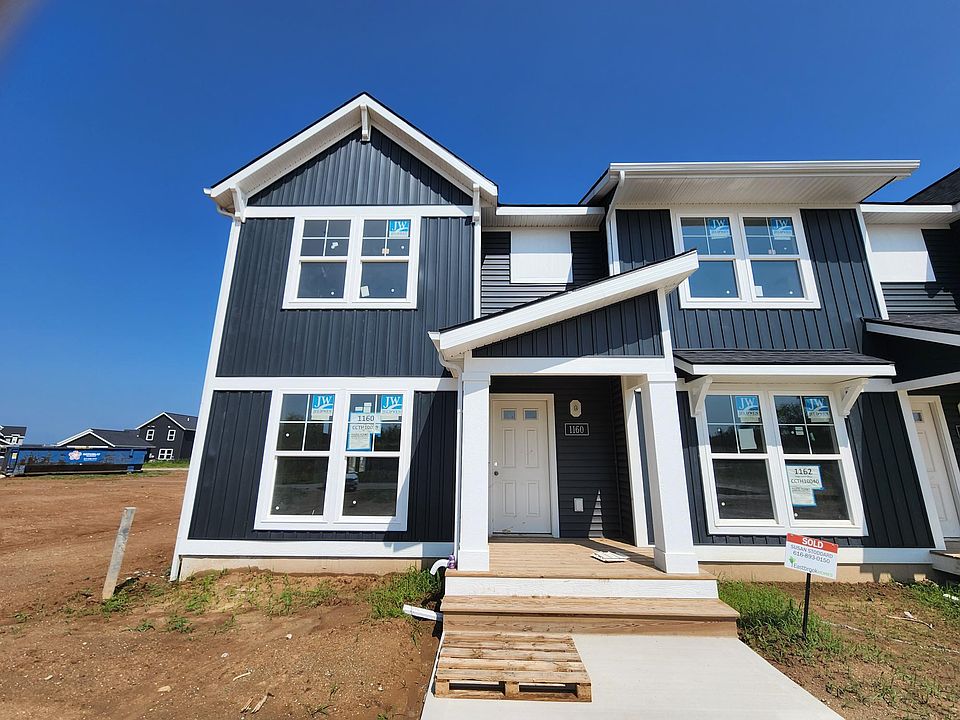 CCTH10039 Unit A. Welcome to the Thayer Townhome! At 1525 sq. feet, you'll be surprised by how much space this townhome offers! This Thayer Townhome features our ''Farmhouse Collection'' and offer two levels of modern design efficiency with a private courtyard space between the home and the garage. Visitors are greeted on the main level by a covered porch, entryway, and coat closet. The open concept main floor includes a living room, dining area, and kitchen a offering spacious pantry & stainless steel appliance package. Powder room and mechanical room conveniently located. The upper level includes an owner-suite featuring an attached private bathroom and large walk-in closet. Additionally, this level features another full-size bedroom full bath. For your convenience, the laundry room has been thoughtfully placed on the upper level also.