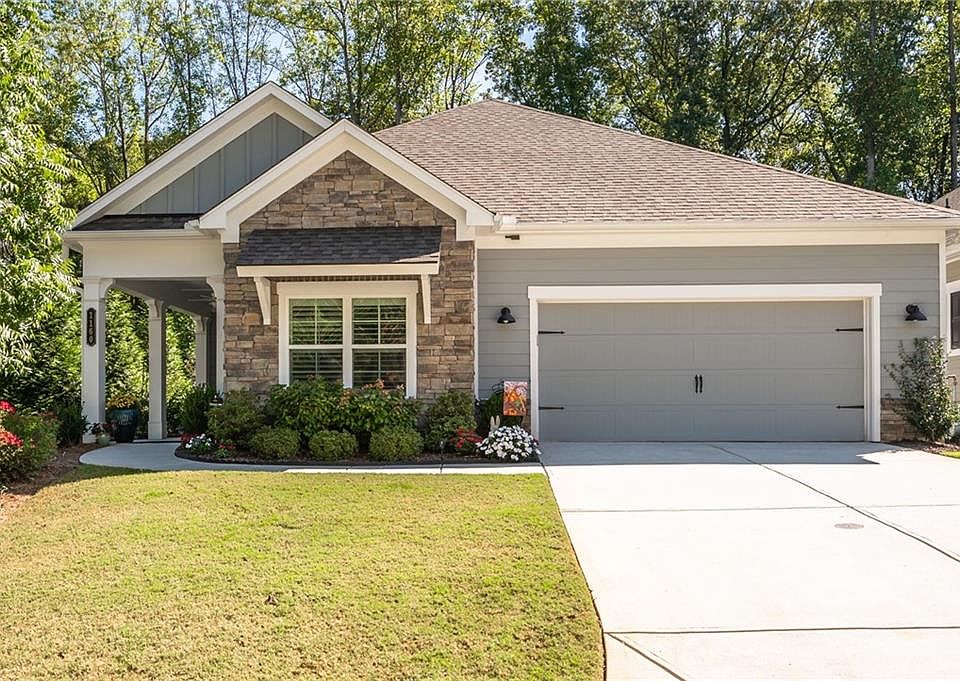 Welcome to this beautiful 4-year-young home in a desirable 55+ community of 1825 STILESBORO. With 3 bedrooms and 2 baths, this home offers tons of upgrades and an open floorplan designed for both relaxation and entertaining. Step into the chef’s dream kitchen, featuring a large island with quartz countertops, a stylish subway tile backsplash, stainless steel appliances, and not one, but two pantries for all your storage needs. The dining room comfortably seats 12, perfect for entertaining guests. The primary bedroom is a true retreat, boasting spacious sitting area, his and her separate closets, and a spa-like ensuite with double vanities and a luxurious walk-in shower. Neutral colors and customs plantation shutters throughout the home provide a warm, welcoming atmosphere. In the great room, enjoy mobile blinds for added convenience and style. Outdoors, the covered enclosed patio is perfect for year-round enjoyment, offering a peaceful setting with views of the private, fenced backyard and nearby Kennesaw Mountain. The yard is an oasis, ideal for nature lovers, and offers a low maintenance lifestyle. This home has been meticulously maintained by its current owner and is prepped and ready for its next fortunate buyer. You’ll love the low HOA fees, which cover weekly lawn care and pine straw twice per year, allowing for a hassle-free lifestyle. Your weekends will be free to do everything or nothing! The quaint, friendly subdivision makes it easy to get to know your neighbors, and the location is unbeatable. Don’t delay, book your appointment for a private tour today!
