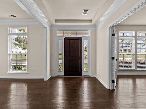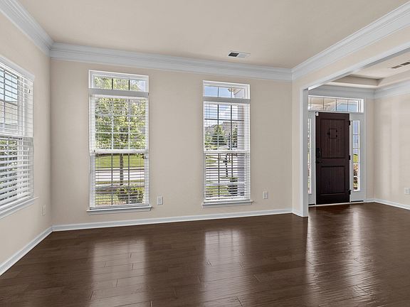 Located in one of the Triangle's most desirable neighborhoods in the RTP, this stunning house has a large open floor plan, resort style amenities and high-end finishes, This beautiful home boasts hand-scraped hardwood floors, crown molding through out, a large, custom kitchen with granite countertops, ceramic tile backsplash, and stainless-steel appliances. Off the spacious foyer is a gorgeous light filled living room, a large guest suite with en-suite bathroom which can double as a home office, and a formal dining room with beautiful millwork. The spacious family room includes a cozy gas fireplace, views of the fenced-in backyard, and direct access to your private patio. Above the two car garage is a large bonus room, full bath, and walk-in closet. The Second floor features a spacious primary suite with soaking tub, his and her vanities and closets, three additional bedrooms, and a laundry room with washer/dryer included. Community features a pool, tennis courts, clubhouse, fitness center, gazebo, dog park, community garden and playground.