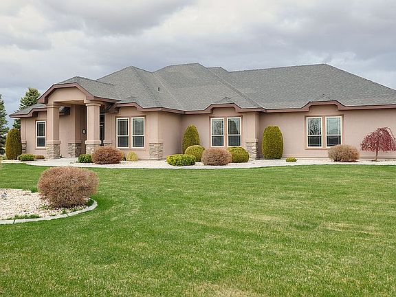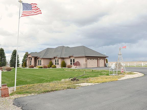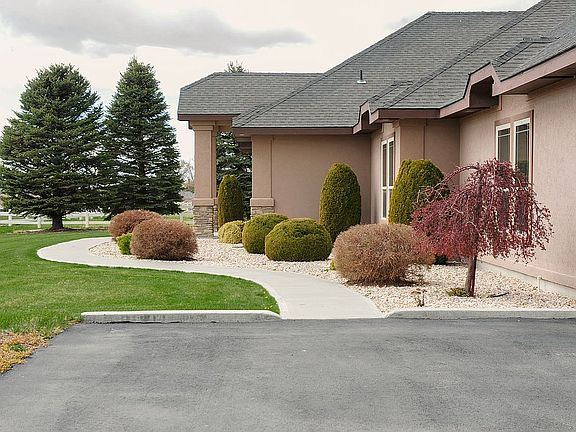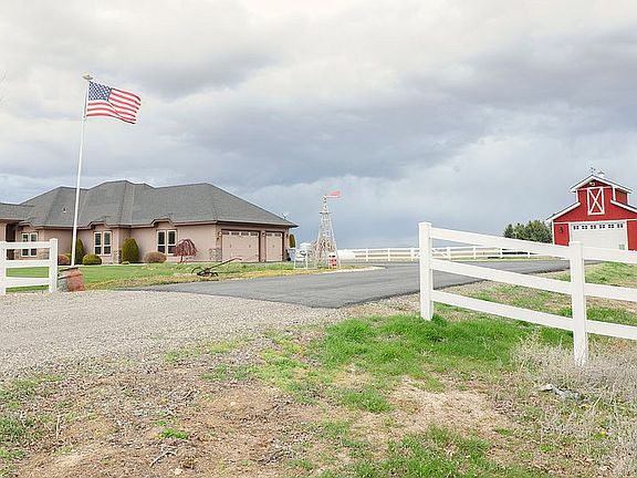 Horse Property with 2.22 acres! This home is spacious, inviting, and all on one level! Many custom-built features. Greeting you as you walk in the door with a large entryway and two bedrooms, or one bedroom and an office. You choose! Large halls leading to the remaining two bedrooms on opposite sides of the home. A large family room in the center of the home that features a gas fireplace, beautiful bookcases and vaulted ceilings with an open floor plan with kitchen, dining, and the perfect pantry. The homes' exterior is beautifully landscaped with established lawn, sprinkler system and many trees. The pasture is fenced and ready for animals. Additional small hobby barn great for yard machines and tools! The view is breathtaking of the mountains and water in the canal, it's a must-see.