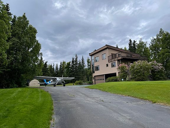 Live the Alaskan Pilot's dream! Hangar home estate, for sale or lease, on prestigious, privately owned O'Malley/Sky Harbor Airstrip, conveniently located on the beautiful lower hillside in South Anchorage, providing the top schools (South High, Goldenview Middle & Huffman Elementary) and best lifestyle in Anchorage, at Sky Harbor Estates. Commanding 360 degree views of Cook Inlet, Alaska Range and Sleeping Lady to the west, as well as the Chugach Mountains to the east, giving the gift of daily sunrises and nightly sunsets, and daylight surrounding the park-like property throughout the day. Spacious 4,700 Sq. Ft. home (4 BED/3 BATH), including 1,700 Sq. Ft. HANGAR, GARAGE, WAREHOUSE and/or STORAGE FACILITY, with a 40 Ft. door (with a removable divider). This unique home offers eco-friendly SOLAR heating and features many decks, overlooking a secluded 1.2 Acre park-like estate, on a private hilltop surrounded by mature trees. Tenant is responsible for all utilities, garbage, etc. and have appropriate accounts in their own name(s).