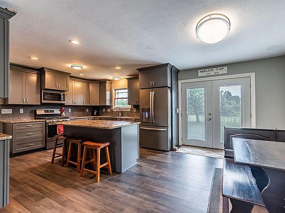 Spacious inside and out. This 4 bedroom, 3 full bath home on 5 acres has something for everyone. The 4 level split has a large kitchen with granite tops and breakfast island that overlooks the dining area and living room. Concrete patio off the kitchen is perfect for grilling and chilling with its private backyard. Upstairs you'll find the owner's suite plus 2 additional bedrooms and hallway bath. One level down is the family room and an office or 4th bedroom. The lowest level has the laundry and rec space. 3 car attached garage plus a detached car garage with furnace and electric. Concrete driveway.