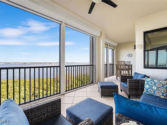 Experience UNOBSTRUCTED views of the Caloosahatchee River from your oversized lanai, perfect for relaxing or entertaining! ENJOY LUXURY LIVING at it's finest in this COMPLETELY REDESIGNED, ONE OF A KIND, 8th-floor condo in Palmas Del Sol at Gulf Harbour Yacht and Country Club. This 2-bedroom + versatile den, features a MURPHY BED, seamlessly transforming it into a 3rd bedroom for guests and 2.5-bath residence offers over 2500 sq. ft of amazing living area. Every detail has been thoughtfully IMPROVED from the kitchen which is a chef's dream, showcasing quartz countertops and backsplash, a wet bar with a wine cooler, and sleek new appliances. 24" x 24" porcelain tile flooring and plantation shutters to the new paint, and NEW HURRICANE IMPACT WINDOWS AND SLIDERS are 185 MPH rated. The new hurricane-rated frosted CUSTOM glass front door provides both style and security, while the A/C and hot water heater, replaced in 2022, add peace of mind. The oversized primary suite includes a serene seating area with stunning river views, and the EXPANDED & REDESIGNED walk-in closet offers ample storage. The spa-like primary bathroom HAS BEEN RECONFIGURED with a walk-in shower with dual showerheads, two separate vanities, a heated towel rack, and a state-of-the-art Toto auto-flush toilet. The split floor plan ensures privacy, with the second bedroom and office/den/3rd bedroom located on the opposite side of the condo, perfect for hosting guests. There is an additional office off of the primary wing that the was CUSTOM DESIGNED. Completing the package is an oversized UNDERBUILDING 2 CAR ENCLOSED GARAGE, offering convenience and protection for your vehicles. Steps to the community pool, spa and clubhouse. Private memberships available for purchase to enjoy all the fine amenities that Gulf Harbour has to offer. Golf, tennis, dining, state of the art wellness center! Don’t miss this rare opportunity to own a piece of paradise in one of Gulf Harbour's most prestigious communities.