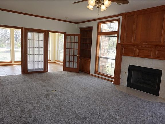 FRENCH COUNTRY CHARMER! Beautiful home in a beautiful setting. Living room w/fireplace, built-in bookcase & entertainment unit. Formal dining w/bay window, butler's pantry & walk-in pantry. Large eating area off kitchen. Kitchen island with prep sink & gas cooktop. Relax & enjoy view of the property from sunroom. Spacious master suite with fireplace & balcony that overlooks the front lawn, huge master bath has separate vanities, whirlpool tub, shower, large walk-in closet. Second & third bedrooms share Jack 'n Jill bath. Open patio with fire pit, rose garden enclosed with low brick wall. Metal roof installed fall of 2017. Fantastic 30 x 50 insulated shop w/concrete floor, generator, air compressor, overhead door at each end & bathroom. Potting shed & garden area. Pond w/fishing dock, don't miss the clearing beyond the south treeline that is part of the acreage. Numerous trees including pecan, pine, redbud. There are 2 wells, 1 supplies the house & the other goes to shop & pond.