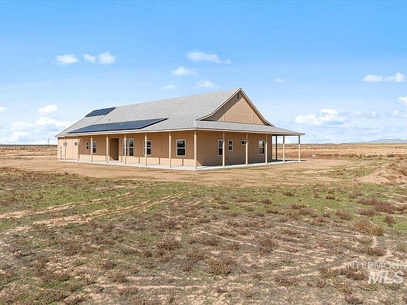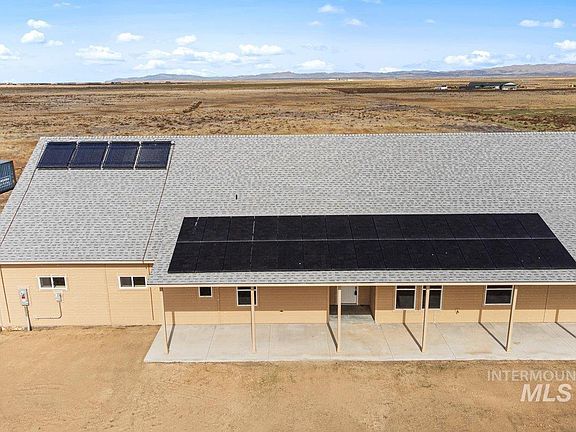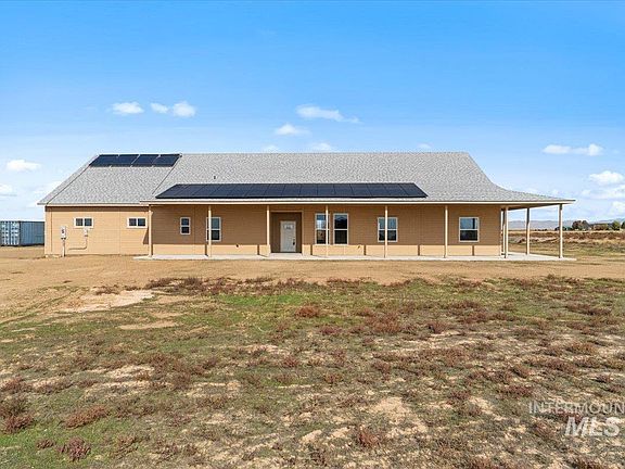 Come see this cute ICF farmhouse! If you are looking for living off the grid, this house is for you! About 10 mins off of the Simco Exit between Boise and Mountain Home. The exterior is fully finished minus paint, but the interior can still be what you want it to be! It's ready for sheetrock and the finishes. GE Cafe Matte White Appliances are all included. It has a Tesla backup battery with a Span electrical panel for smart homes. The well, well pump, and septic are installed. The house has a solar thermal direct open loop system for floor radiant heating and cooling system and solar hot water which will help to cut utility costs. House includes the solar storage 50 gallon tank, 80 gallon heat pump water heater, cool solar attic & whole house fan, and paid for solar panels! Adjacent to 3,000 foot air strip! Come check out this beauty! 72 hour bump