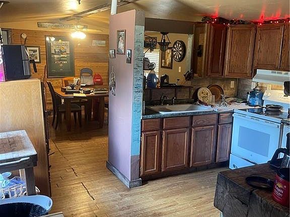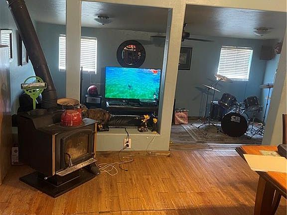 Great living on 1.14 acres. 2 bedrooms has a add on living room, 3 sheds outside one has electric used as a spare room maybe use as a man cave 12x16, one from riding mower/vehicles detached garage 12x24 carport, and the other insulated storage storage unit 12x20. 2 underground storm shelters. Has fence fenced off for animals to have their own field while you can still enjoy your back yard.