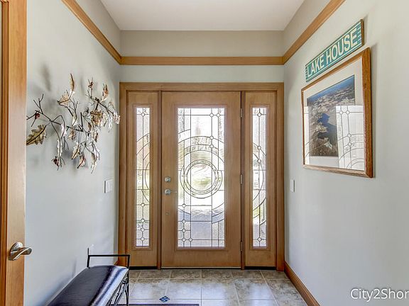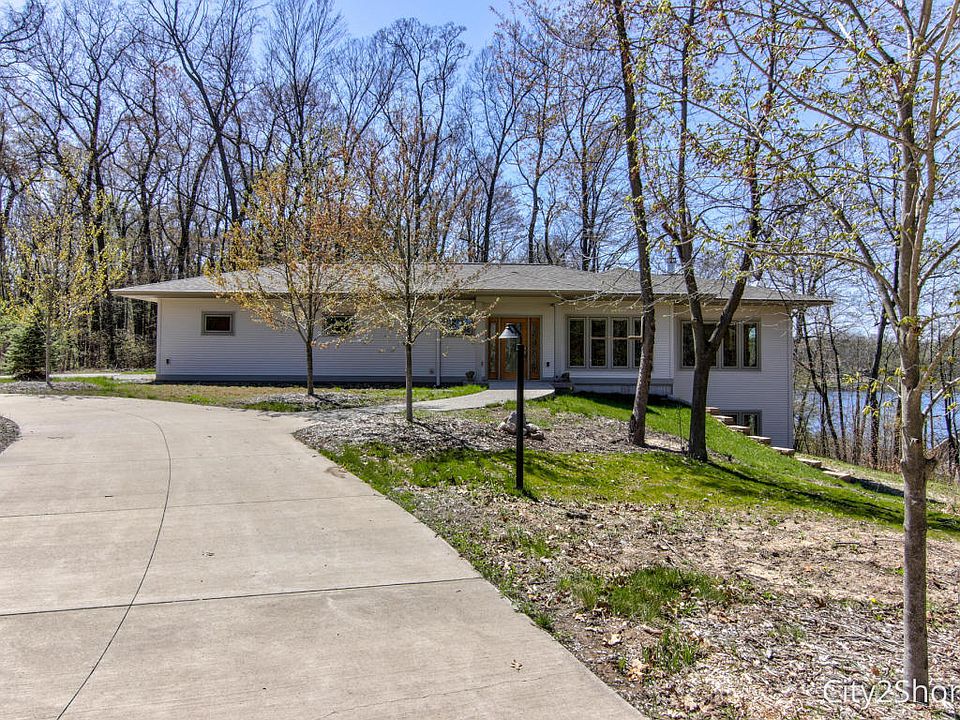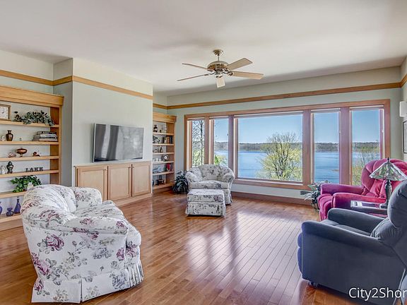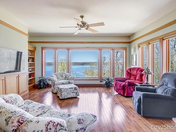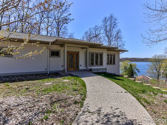 It could be yours. Financing just fell thru at last minute. It's all about the lake and the 360 degree views from the top of the hill, on the dock, or cruising the lake! This is lake living at its very best! This custom home has a Frank Lloyd Wright theme with a modern look. Designed for easy upkeep, inside and out. Comfortable for a small or large family. Great for entertaining on the main or lower levels; outside around the fire pit overlooking the lake; and on the permanent dock gatheringarea. Lots of parking on the lake lot and around the house, a rarity for lake property. The 45' x 24' pole barn will hold all of your lake toys.