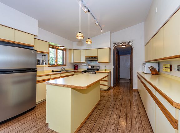 WOW! AMAZING 1700+ s.f. ranch on .75 acres! 3 bedrooms, 2.1 baths on main level and unfinished basement. Attached 4.5 car garage (has 2 car garage door) and huge shed. Garage has hot/cold water and is heated. Kitchen is HUGE with tons of cabinets and island with newer dishwasher. Water heater is 2 years old. Large main floor laundry room with cabinets and counter top space. Hot tub room off of laundry. Vaulted ceilings in kitchen, dining and living room. Master bedroom features full bath, walk-in closet and a 2nd closet. Gazebo on the large deck overlooks huge yard. Nice little neighborhood with less than 10 houses within walking distance to Wilmot softball field and downtown Wilmot! This home won't last long!
