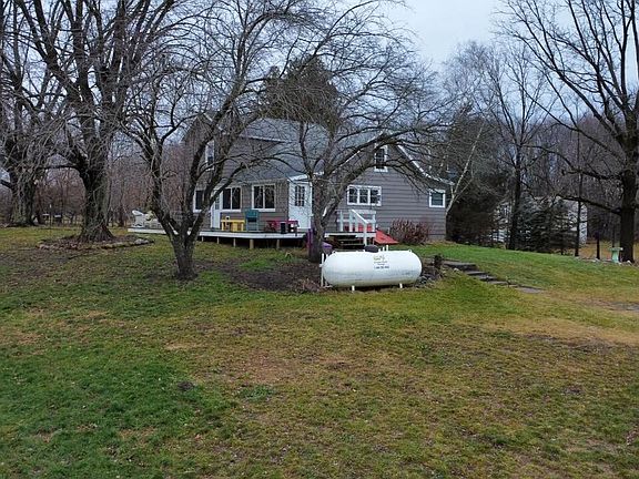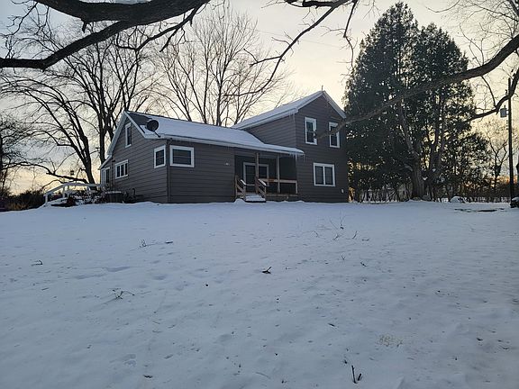 Updated 3 bedroom/1 bath home sitting on 5 rolling acres on a corner lot with a beautiful setting. Home features an awesome and spacious kitchen with marble countertops, self-closing drawers and cabinets, and new stainless steel appliances. There is new flooring and windows throughout. The well, hot water heater, furnace, and a/c unit have all been replaced in the last couple years. In addition to the two bedrooms on the second story there is a very large bonus room that could be finished. Enjoy the setting on the cute front porch or the very large back deck that were both built 2 years ago. In addition, there is a detached extra deep 2 stall garage and and large pole barn with attached chicken coop and lean-to with fenced pasture. Laundry room has a dog door and large fenced dog area. New garage doors were installed 1-31-23. The home and garage are scheduled to be professionally re-painted this spring due to fading paint last year. Agent is owner