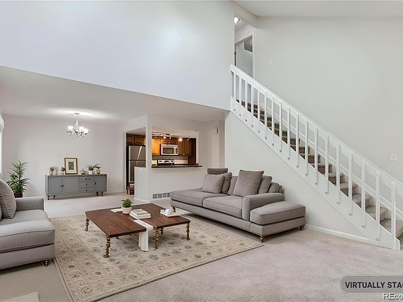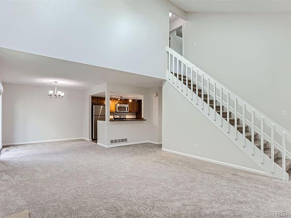 Welcome to this remodeled (new carpet, paint, bathrooms, newer windows + more) cluster home nestled in a serene Aurora neighborhood. This 1,708 sq. ft. residence boasts a spacious layout across two floors, with a first-floor area of 923 sq. ft, a second-floor area of 654 sq. ft, and an additional 131 sq. ft bedroom with 500+ sq. ft. of unfinished basement space. The home offers four generously sized bedrooms and two and a half bathrooms, including a large primary suite with a walk-in closet. All bathrooms have been recently updated. Vaulted ceilings on the main floor elevate the ambiance of the living space, while new carpet and luxury vinyl plank (LVP) flooring flow seamlessly throughout.
