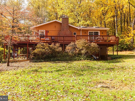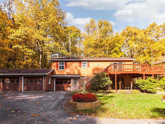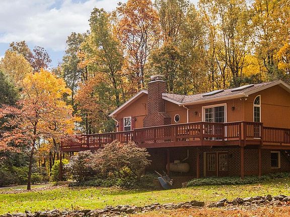 LOCATION LOCATION LOCATION! Gorgeous Setting for this property, backing to AppalachianTrail, with large exterior decking to enjoy the scenery. Super Private/Country/Woods to enjoy and explore but just a few miles/few minutes to town, shopping etc. The main level/upper level consists of 2 bedrooms and 1 full bath, the masterbedroom has a walk in closet and 2nd closet so plenty of space, kitchen/dining room/living room one big open area, and then the vaulted ceiling family room - very spacious. Lower "basement" level/mostly above grade, has a partial kitchen, 1 full bath, laundry room, open living/dining and a storage room under the newer addition with closets and shelving - so much storage in this house. The exterior was painted in the fall of 2020 as well as gutter guards installed; 3 Garages provide plenty of room for cars, workshop etc.