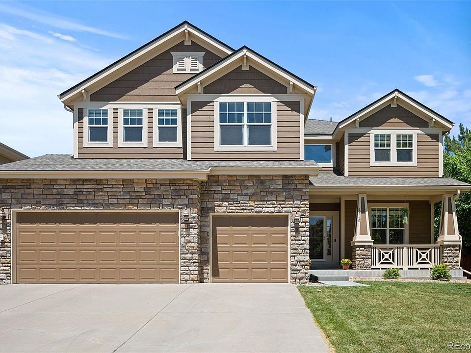Welcome to your dream home in the sought-after Auburn Hills! This stunning two-story residence, located on a corner lot within a friendly cul-de-sac, is a true gem you won't want to miss. Be greeted by a wide-open entryway featuring soaring two-story ceilings, updated stair railing, foyer chandelier, and luxury wood-grained tile floors that extend throughout the main level. On the main level, enjoy a formal living room, dining room, study, and family room with soaring two-story ceilings. The spacious eat-in kitchen boasts an abundance of cabinet storage and stainless-steel appliances, ideal for entertaining as it overlooks the family room and provides access to the welcoming covered patio featuring can lighting and a beetle kill planked ceiling. The upper level offers four bedrooms, including a generously spacious primary bedroom en-suite with vaulted ceilings, abundant natural light, and a luxurious 5-piece bathroom with walk-in closet. Two spacious secondary bedrooms share a Jack & Jill bath with double sinks, while the large fourth bedroom en-suite includes a private full bath. The recently finished basement features two additional bedrooms with egress windows, ¾ bathroom with shower, bonus room with wet-bar and walk-in pantry. No need to worry about storage as there is a nice sized storage room rounding out your stunning new home. Upgrades include: new furnaces & AC units (2021), dual whole home humidifiers (2023) new IR Class 3 roof (2024), upgraded newer carpet, fresh interior paint, newer 5-inch baseboards, newer chandeliers, fans, and lighting in the entry, family room, dining room, kitchen, and bedrooms, newer garage doors, new concrete in backyard (sidewalks) (2024), and expanded front door stoop (2024). Walking distance to the elementary school, neighborhood pool, and parks. Convenient access to I-25 and Highway 83. Enjoy access to the neighborhood pool, which is rare for homes in this section of Bradbury Ranch. More Info: www.CineflyFilms.com/Maize